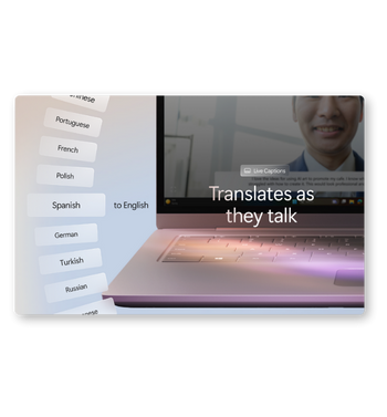 Grâce aux sous-titres en direct avec traduction³, vous pouvez comprendre presque n'importe quel appel ou enregistrement vidéo grâce à une traduction en temps réel depuis plus de 40 langues vers l'anglais.